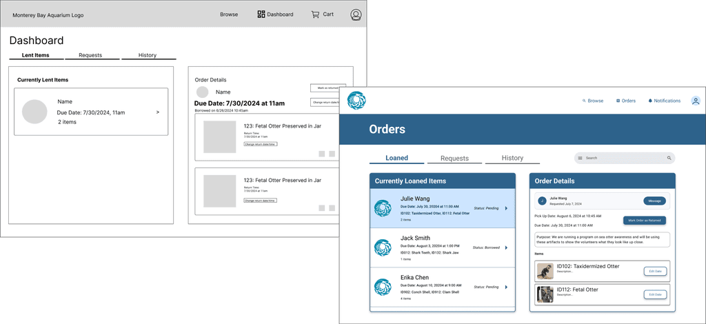 For my capstone, I partnered with Monterey Bay Aquarium to design an internal platform for educators to borrow training artifacts. My team followed a full Double Diamond process to research, prototype, and deliver a polished high-fidelity solution. As a group project, I was the Project Manager and led my team by defining scope, timelines, and communication.