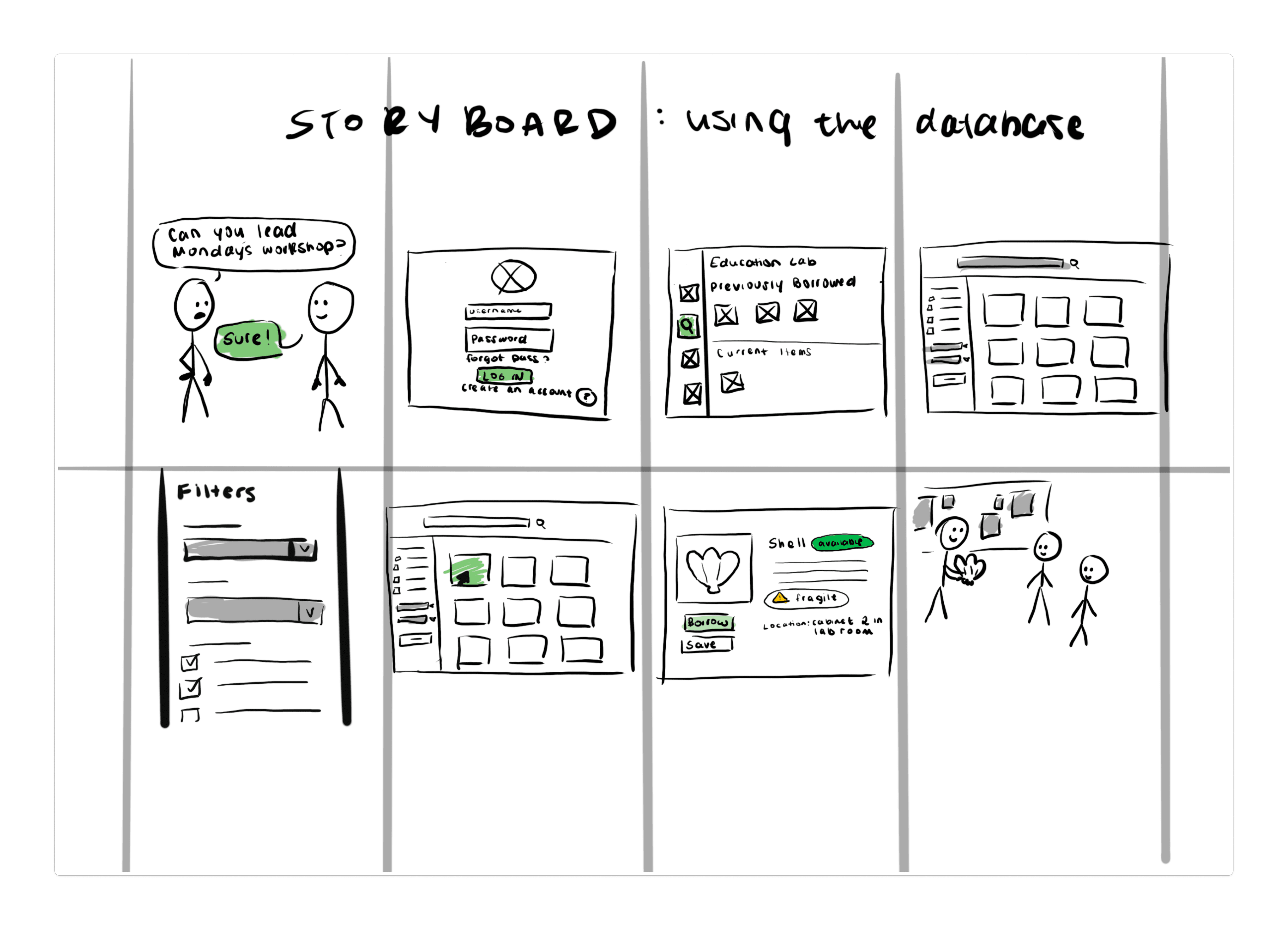 Several storyboards were developed during the brainstorming phase to picture how a hypothetical solution would function in employees' day-to-day operations.